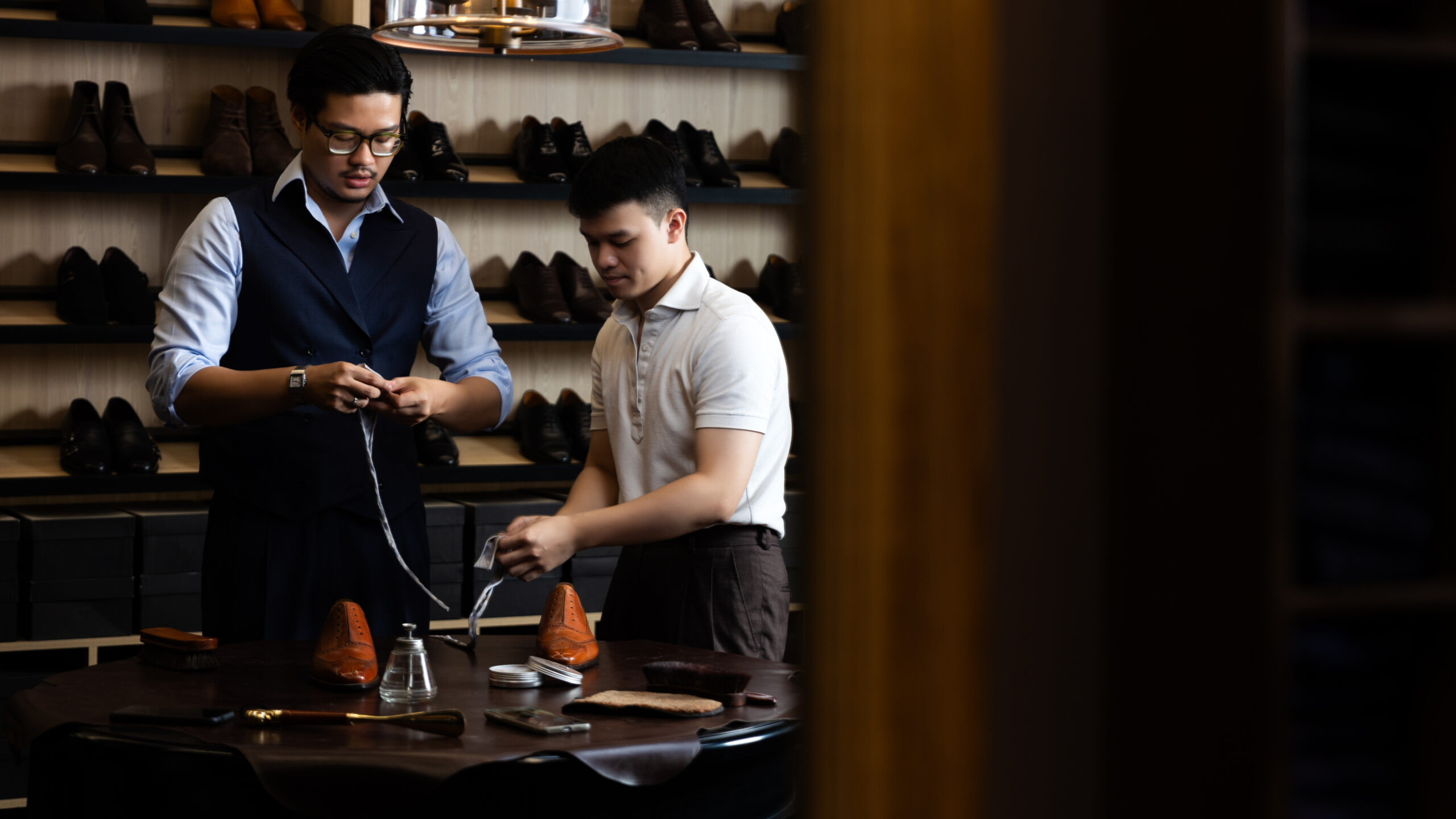 Quy trình nhuộm giày da thủ công tại L’amant Shoemaker