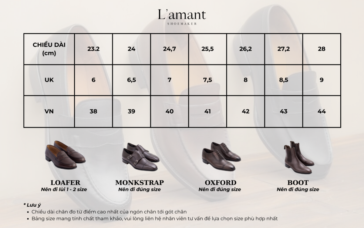 - Chăm sóc giày miễn phí tại L’amant Shoemaker ít nhất 1 tháng/lần.