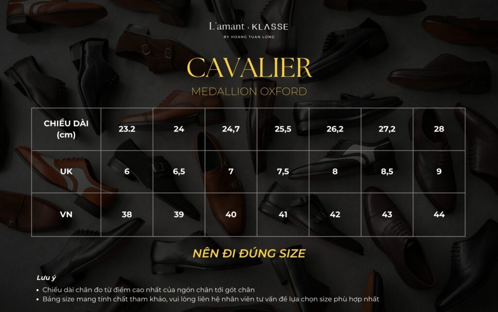 Là mẫu giày được cải tiến từ last giày trứ danh của nhà L’amant ShoemakerVendetta. Mẫu giày Cavalier – Medallion Oxford sở hữu những nét nổi bật từ hoạ tiết được thiết kế bởi đội ngũ nhà L’amant Shoemaker và phom dáng tinh tế, đảm bảo sự thoải mái và tôn dáng khi sử dụng. Cavalier – Medallion Oxford sẽ là sự lựa chọn vô cùng phù hợp nếu bạn đang tìm một mẫu giày để sử dụng trong những dịp trang trọng.